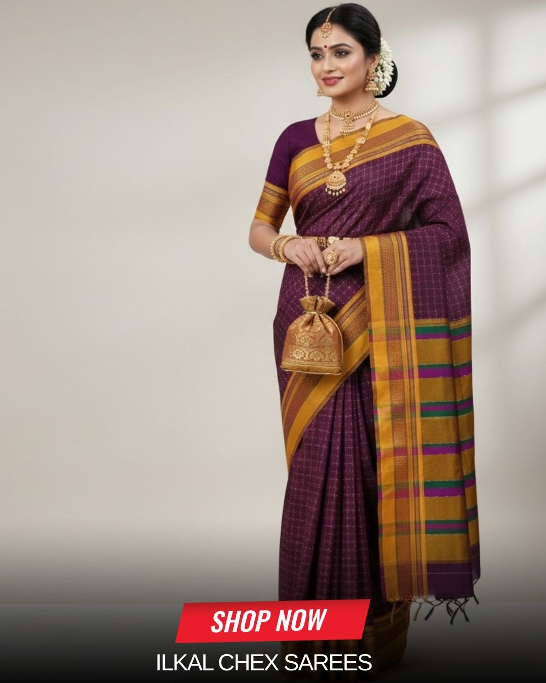 Traditional Green Small Chex Gayatri Ilkal Saree