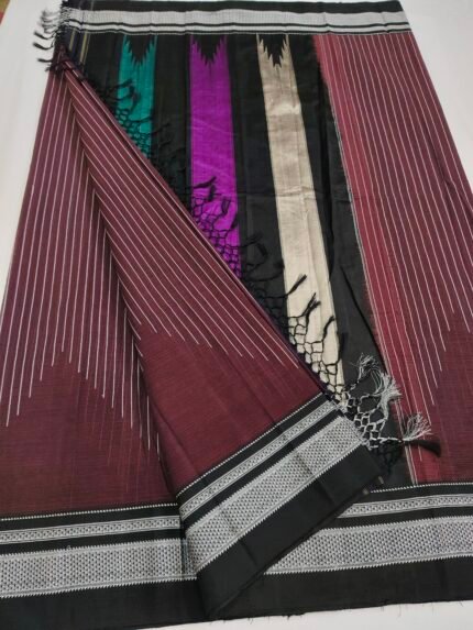 Choco Colour Pure Cotton Strips Handloom Ilkal Saree